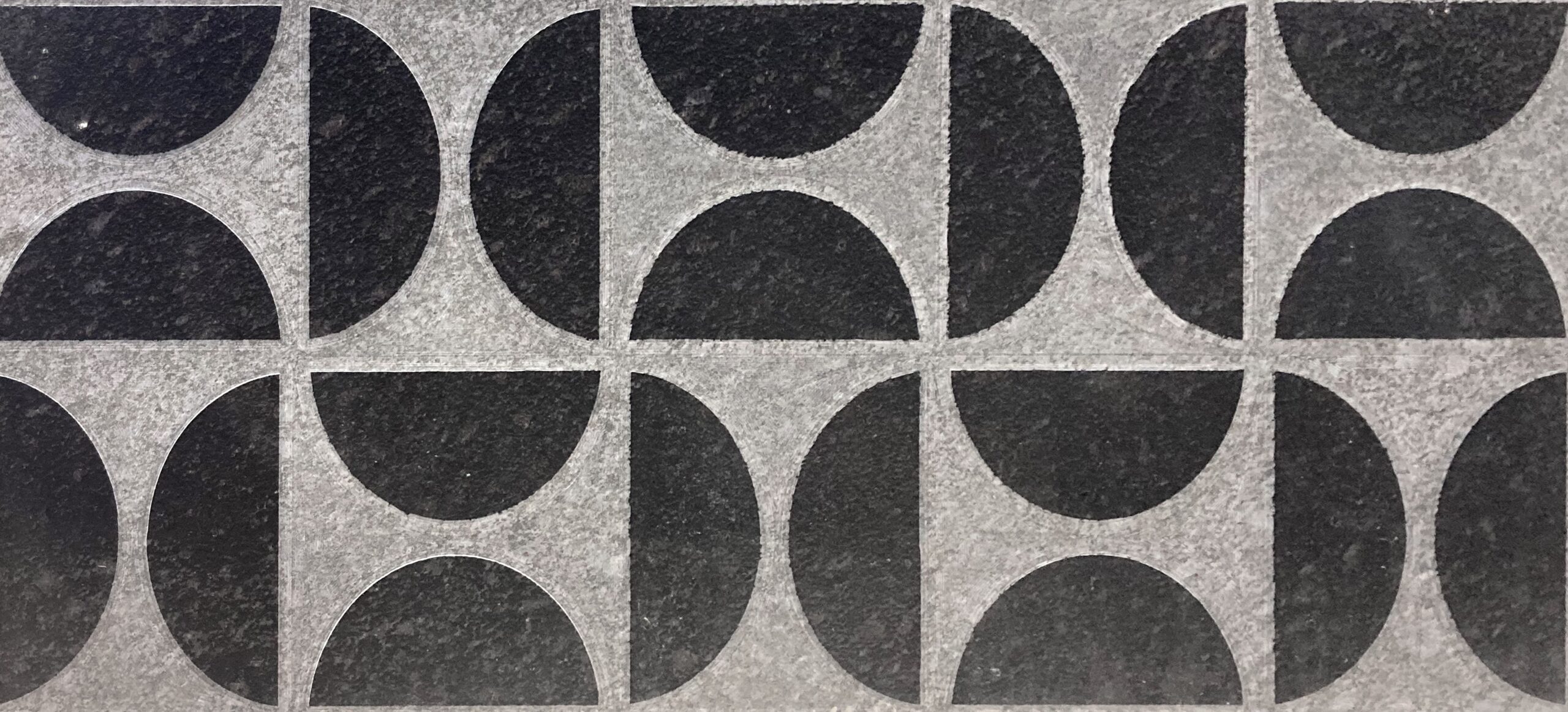 The contrast between the black and gray semi-circles creates a visually striking effect, and the simplicity of the design makes it versatile and adaptable to a wide range of applications.