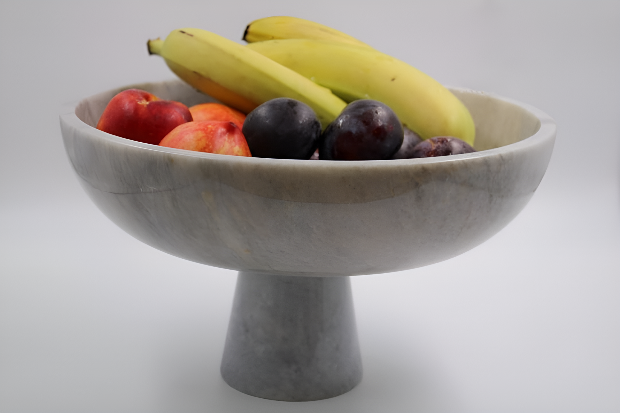 Fruit Bowl Showcase your favorite fruits in style with this spacious marble pedestal bowl. The perfect addition to your kitchen or dining table, it adds a touch of sophistication to your healthy indulgences.