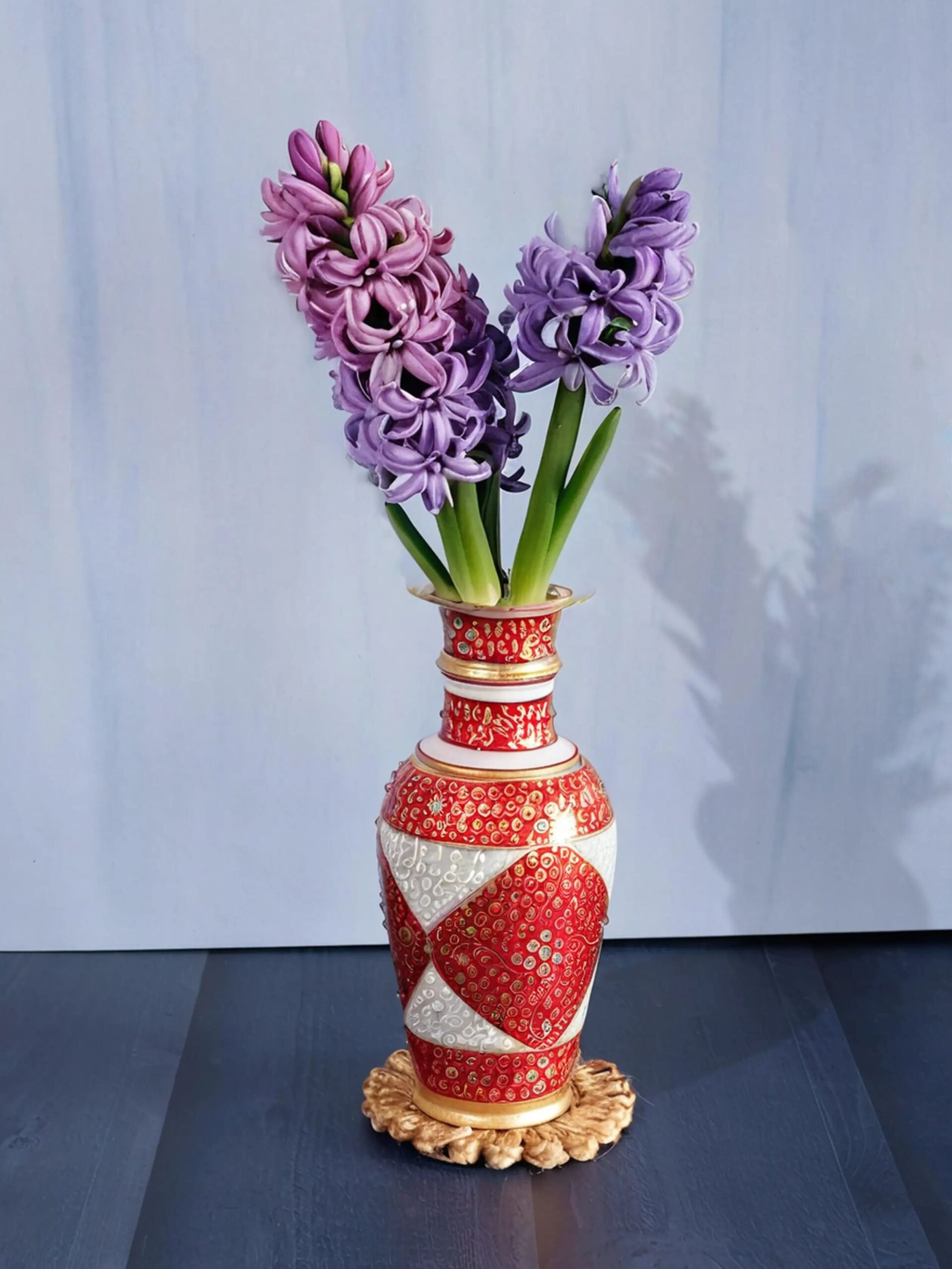 MARBLE FLOWER VASE WITH MEENAKARI WORK