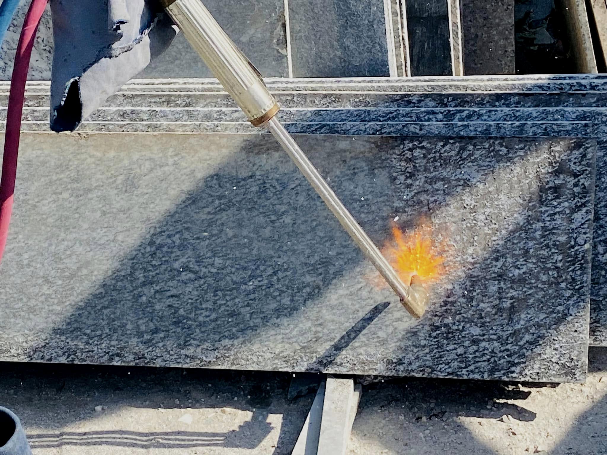 Flamed granite develops anti-slip qualities and becomes extremely weather-resistant.
