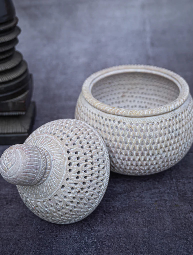 Soapstone Filigree Round Box
