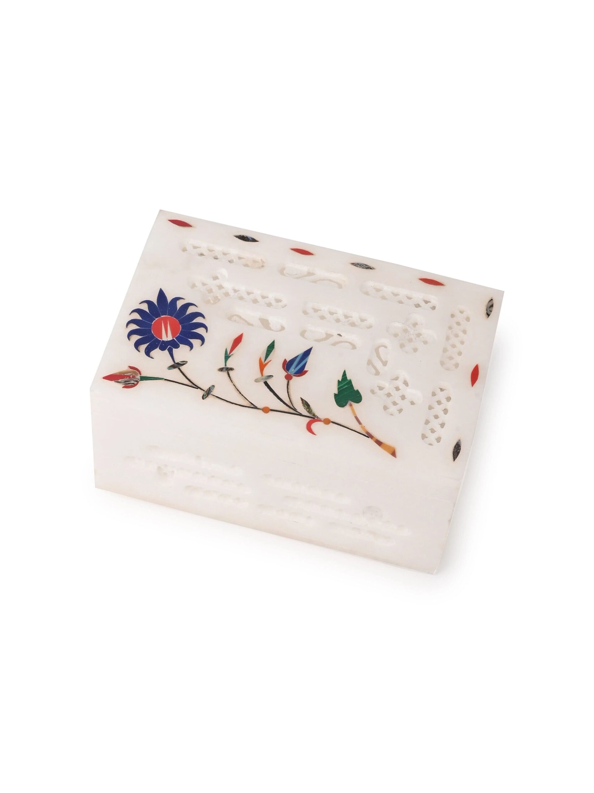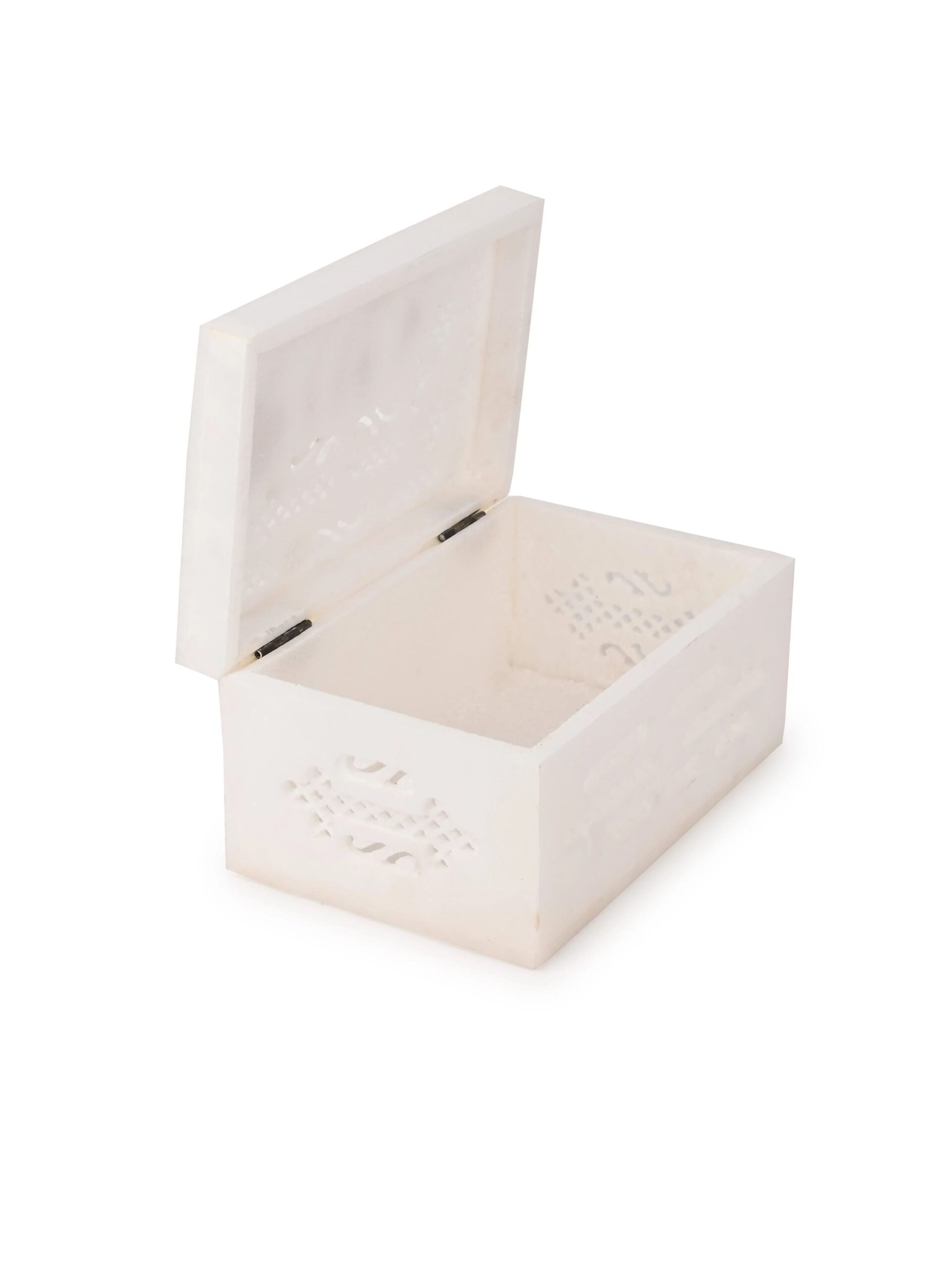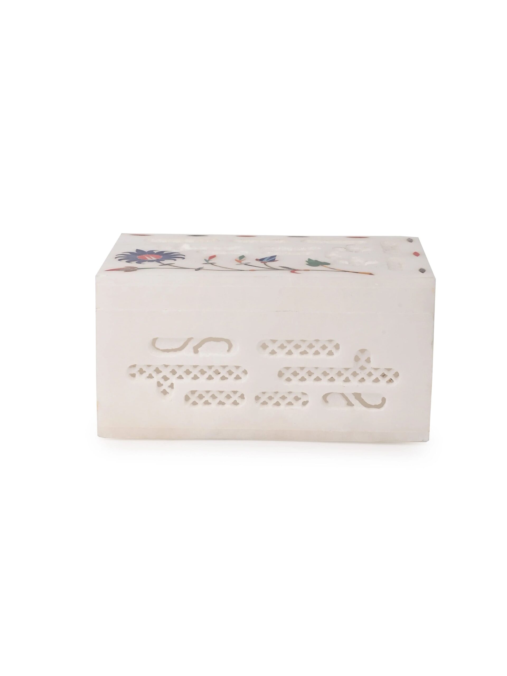 White Marble Jewellery Box with Intricate Carving and Inlay work