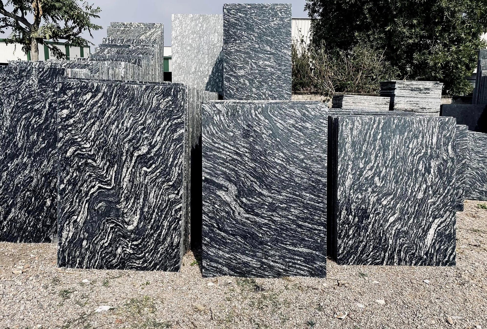 The stone features striking ivory streaks that form winding designs, lending the area a distinctive appearance.