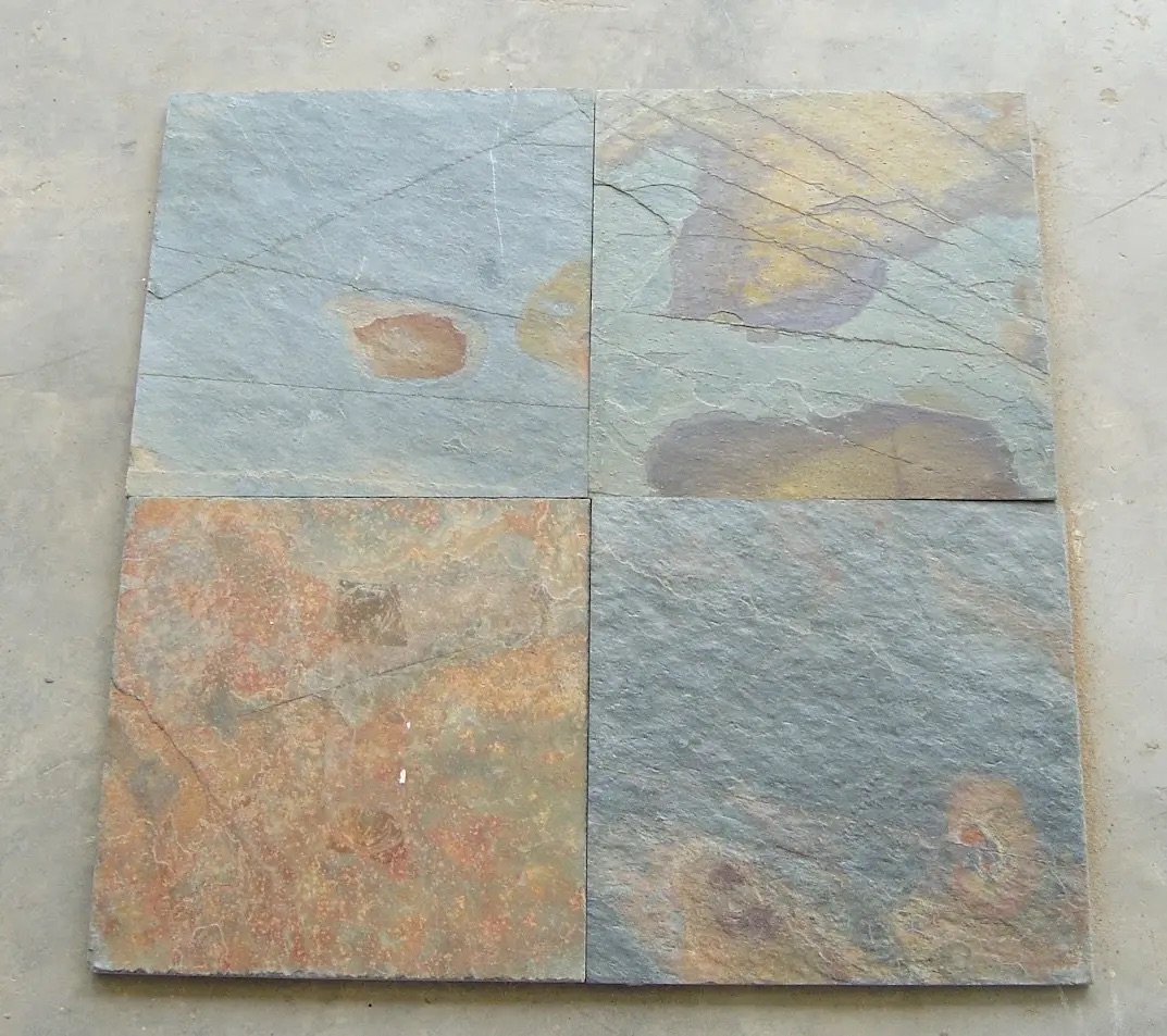 Jak Multi color slate displays a striking pattern of multi-hued, oxidized patches against a deep black background. The dynamic colors that enhance its surface range from golden, azure, and tangerine to beige, amber, and graphite. Perfect for interior and exterior use, this natural stone creates a mesmerizing visual impact on viewers. The ideal locations for installing this exquisite slate include corridors, cooking spaces, and sunroofs. Manufactured and refined at a state-of-the-art Jak multi color slate facility in India, these Indian stone tiles experience strong demand across global markets.