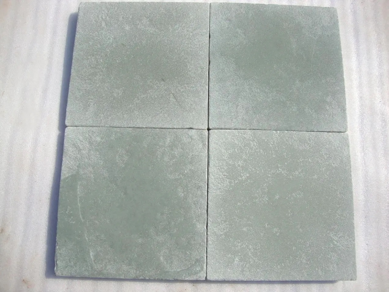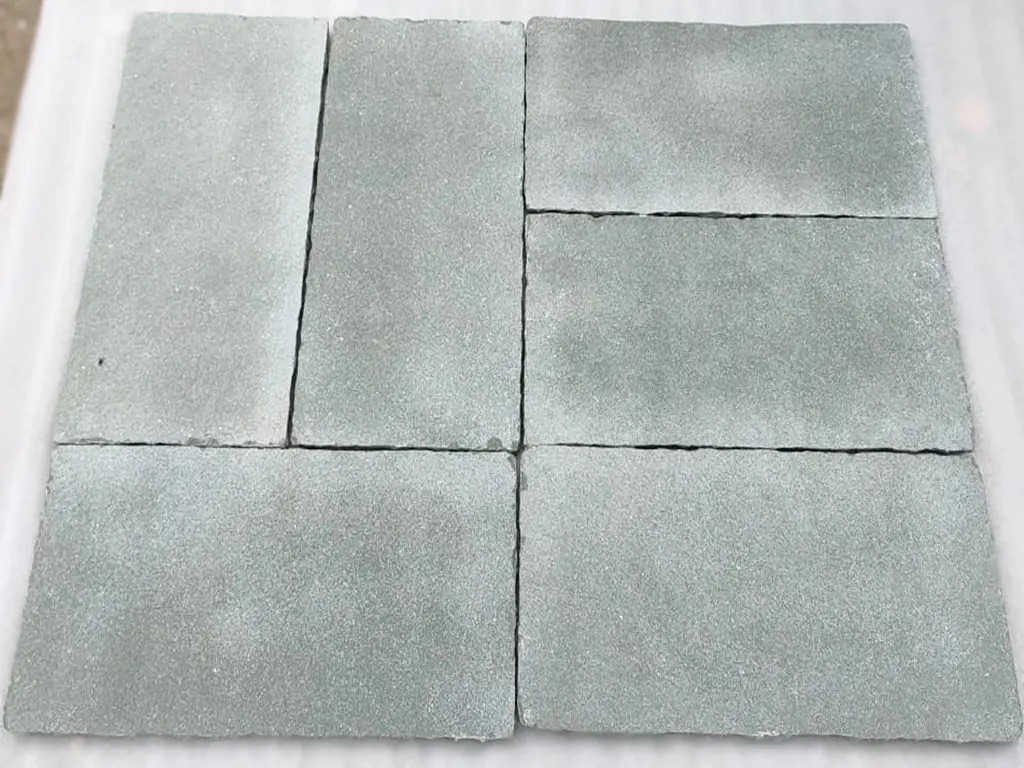 Kota Blue limestone, quarried from Rajasthan, is a light blue stone with subtle yellow and green hues. Its durability, temperature resistance, non-porosity, and stain resistance make it popular for both interior and exterior projects globally.