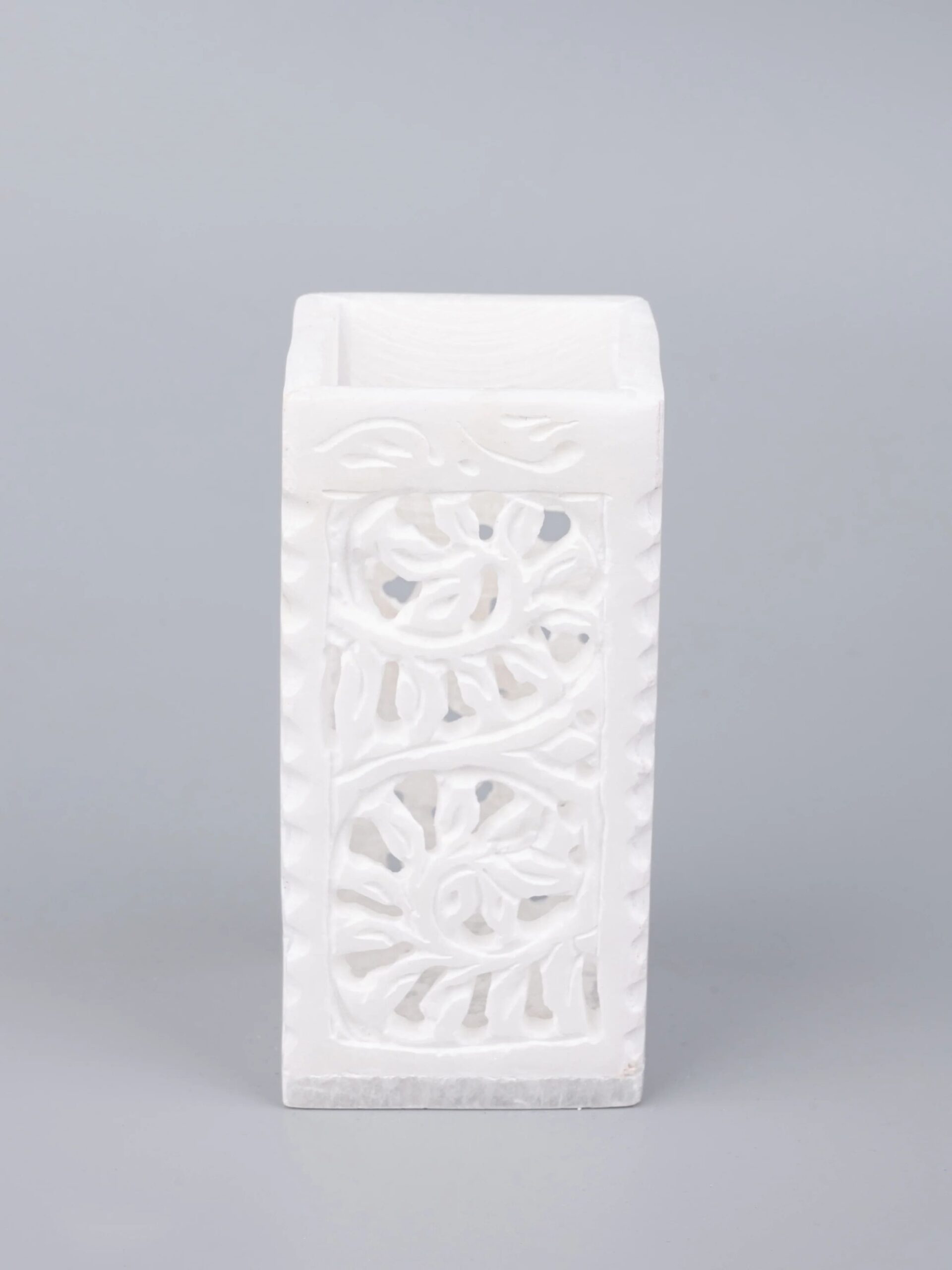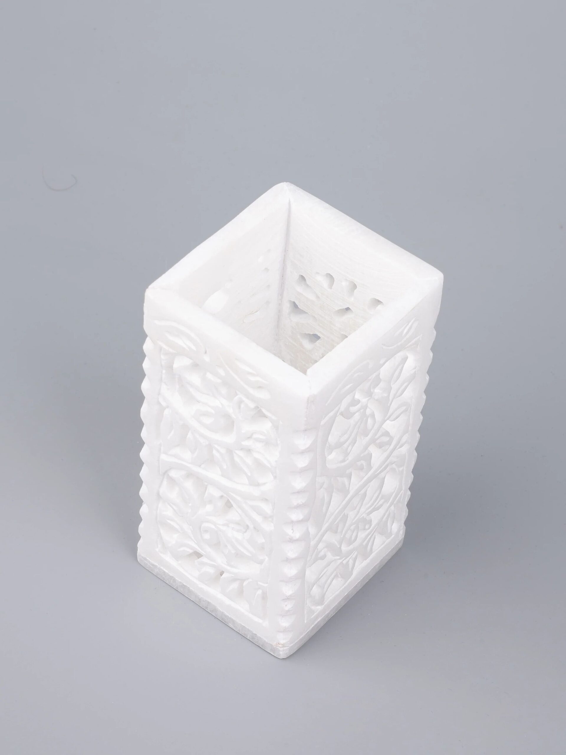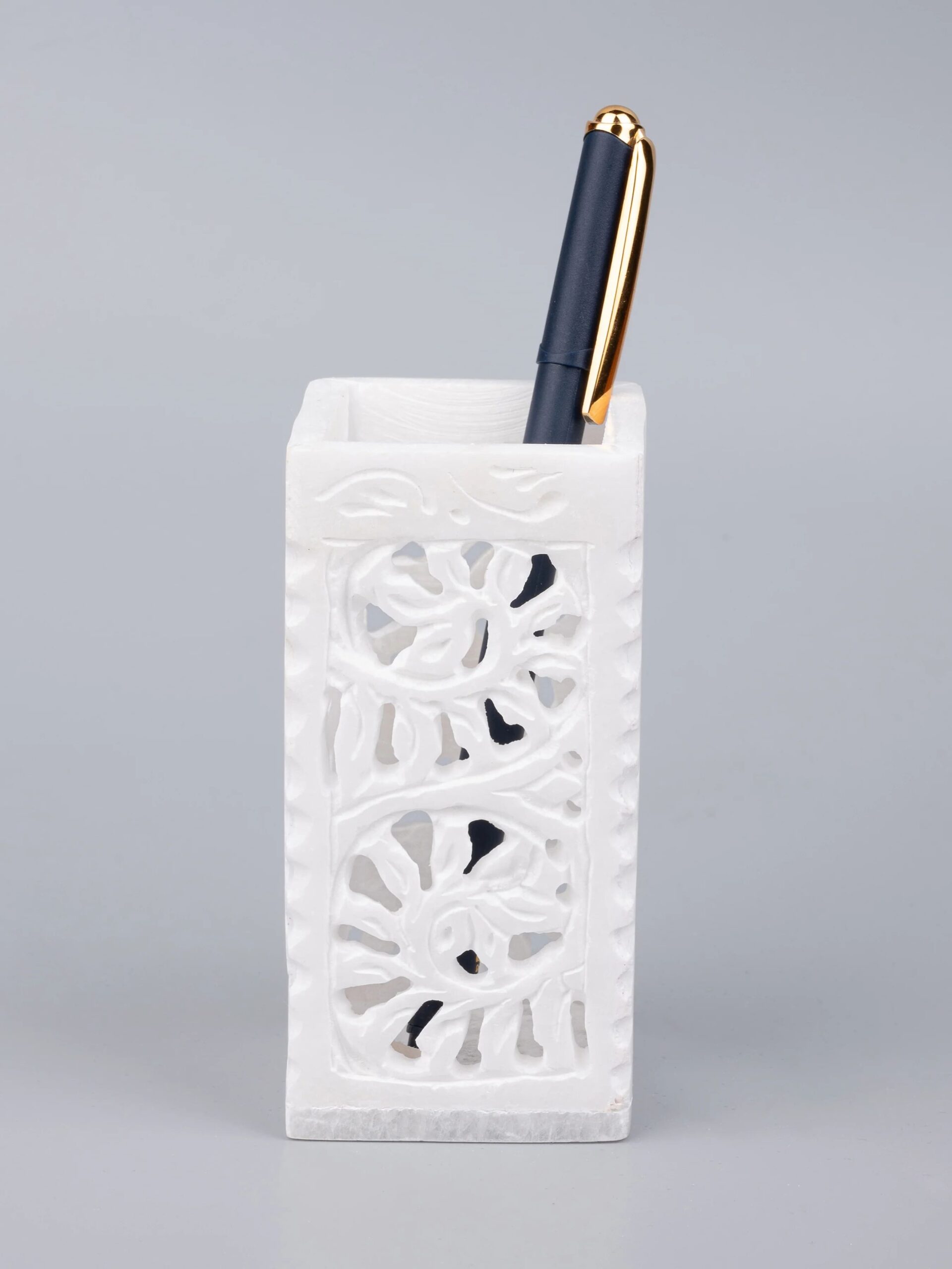 This elegant pen holder is meticulously sculpted by hand from a solid marble piece and serves as a decorative item, home/office accessory, and an ideal choice for business gifts.
